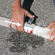 Schieben Sie nun die Schlauchbinde über die undichte Stelle und schließen Sie den Exzenterverschluß mit einem kräftigen Druck, fertig!.