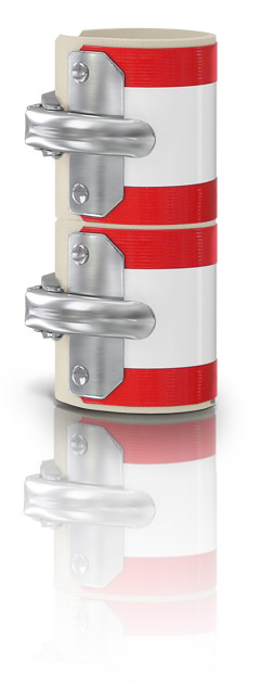 Das hochflexible, 70 mm breite Federstahlband ist doppelt kunststoffummantelt und an allen Kanten mit einem leuchtroten PVC-Band zusätzlich versiegelt. Die verrottungsfeste Moosgummieinlage (3 mm stark) sorgt für höchste Dichtfähigkeit. Die stabilen, hochglanzverzinkten Beschläge sind aus Stahl und wie alle anderen verwendeten Metalle/Materialien vollkommen rostgeschützt.